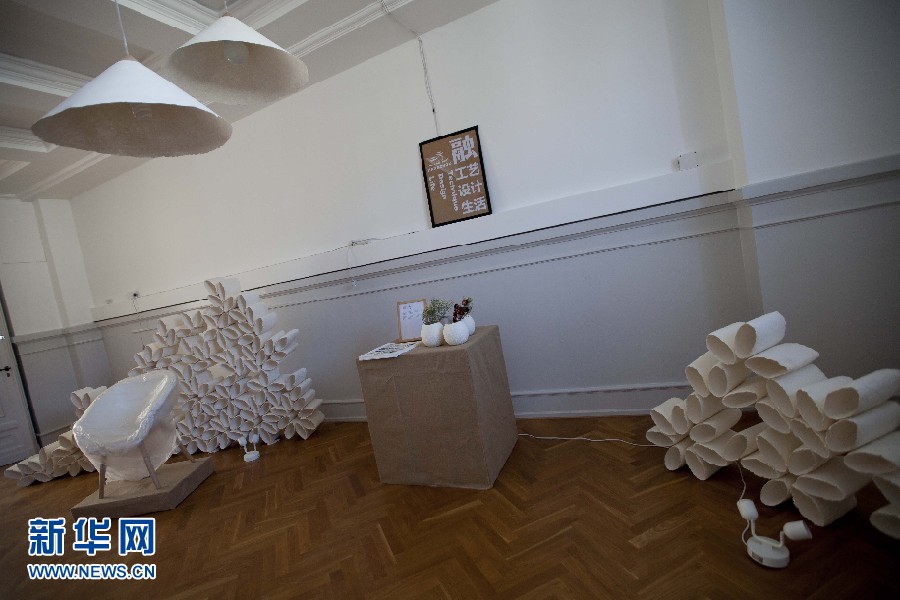 圖為10日所拍攝的“融?工藝設(shè)計(jì)生活”為主題的中國(guó)當(dāng)代設(shè)計(jì)展畫(huà)面。