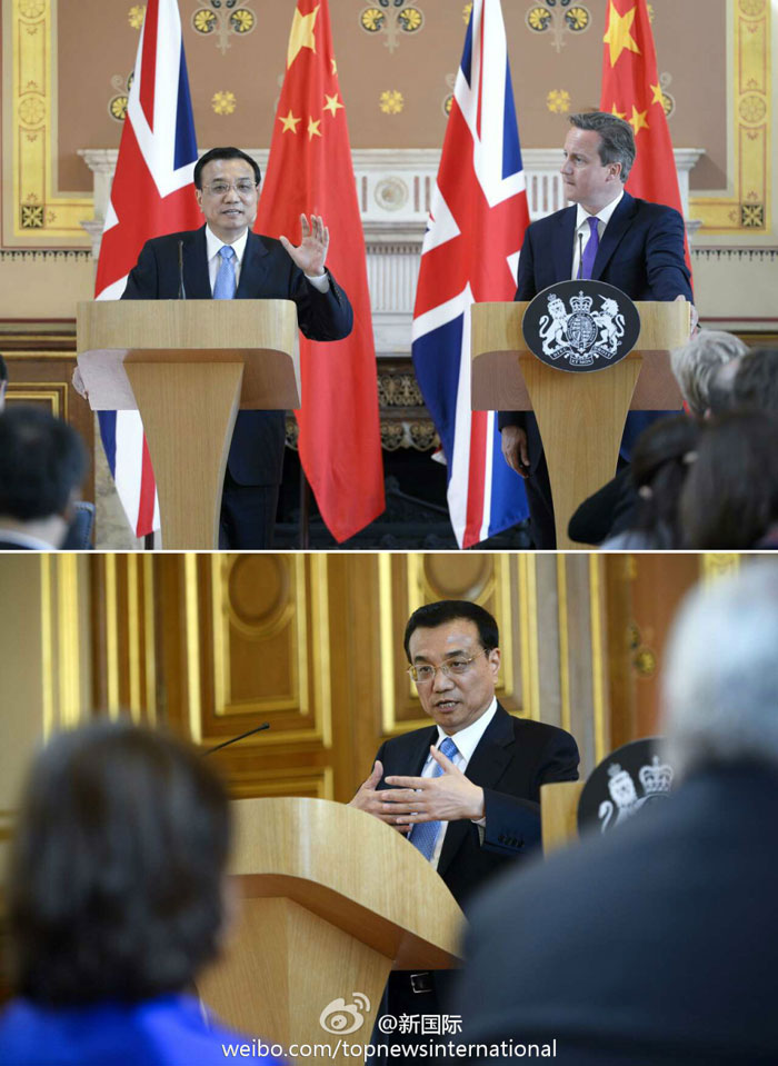 ??? 新華網(wǎng)北京6月18日電 據(jù)新華社“新國際”微博報道,17日,李克強與卡梅倫共見記者。李克強說,中英共同設立總額2億英鎊的科學基金,以加強聯(lián)合科學創(chuàng)新合作,第一個合作項目就是太空項目,這顯示了“我們合作的雄心”。未來5年中國將向英派遣1萬名公費留學生,也歡迎英國向中國派遣更多留學生。
