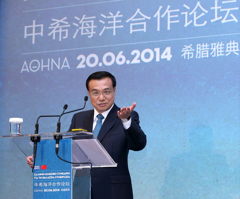 ??? 李克強總理20日在中希海洋合作論壇上說,大海有潮起潮落,國家經濟發展也有起有伏,建設現代海洋文明同樣需要有勇氣去乘風破浪。大??杉{百川,國與國之間也應相互包容、開展對話、交流互鑒。中國愿與希臘攜手同行,讓古老的希臘文明與中華文明綻放時代光彩。