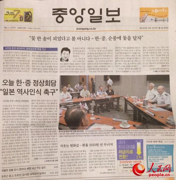 ??? 韓國(guó)《中央日?qǐng)?bào)》在頭版頭條位置刊發(fā)習(xí)近平主席署名文章《風(fēng)好正揚(yáng)帆》 金慧廷 攝