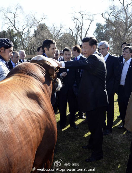 ????新華網北京7月20日電 據新華社“新國際”微博報道,天下事,農為先。正在世界“糧倉肉庫”阿根廷訪問的國家主席習近平19日來到布宜諾斯艾利斯郊區的共和國莊園,了解農牧業發展情況,感受阿根廷傳統高喬人文化。該莊園為阿根廷先進農牧技術和文化代表。