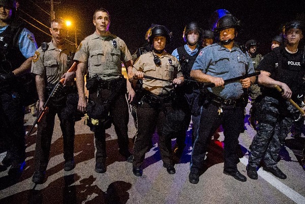??? 8月19日,警察在美國密蘇里州弗格森警戒。當日,繼18歲黑人青年邁克爾·布朗9日下午被警方射殺后,密蘇里州圣路易斯市北部一非洲裔男子19日中午因涉嫌持刀襲警,被警察擊斃,導致弗格森街頭抗議升級。新華社發(沈霆攝)