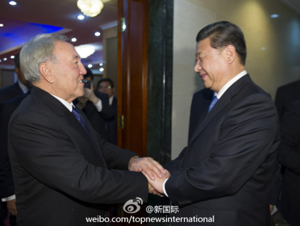 ????新華網(wǎng)北京9月13日電 據(jù)新華社“新國際”微博報道,習(xí)近平12日在會見納扎爾巴耶夫總統(tǒng)時說,今年6月我在北京會見了赴華參加夏令營活動的納扎爾巴耶夫大學(xué)200名師生,年輕人朝氣蓬勃、奮發(fā)向上的精神風(fēng)貌給我留下深刻印象。我們要為兩國年輕人提供更多交流互動的機(jī)會,確保中哈友好事業(yè)代代相傳。