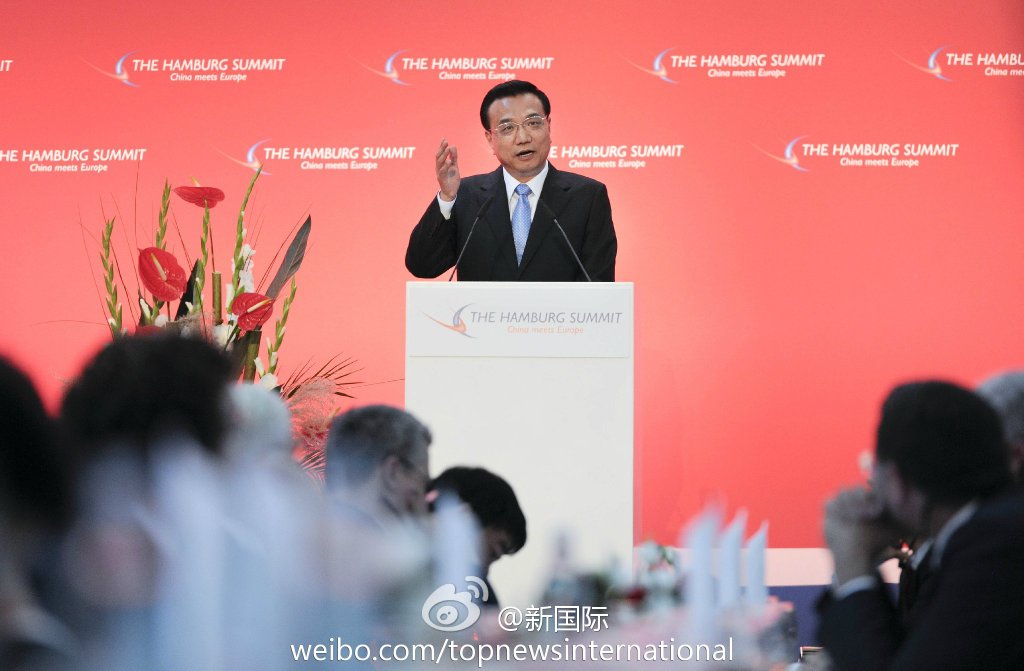 ????新華網北京10月12日電 據新華社“新國際”微博報道,國務院總理李克強11日在中歐論壇漢堡峰會上發表演講說,中國是最大的新興市場國家,歐盟是最大的發達經濟體,“最大”與“最大”交融、一切都有可能,“新興”與“發達”攜手、優勢就會倍增,中歐在新興和發達經濟體合作中可以成為典范。