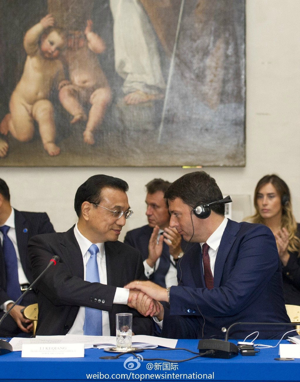 ????新華網(wǎng)北京10月15日電 據(jù)新華社“新國際”微博報(bào)道,中意兩國總理14日在羅馬共見兩國企業(yè)家代表,李克強(qiáng)說,企業(yè)界是推動(dòng)兩國合作的主體和生力軍。當(dāng)前中意都進(jìn)入了依靠創(chuàng)新驅(qū)動(dòng)的時(shí)代,這不僅需要科技創(chuàng)新,而且需要人文精神。希望兩國企業(yè)家爭做現(xiàn)代馬可·波羅,發(fā)揮互補(bǔ)優(yōu)勢,推動(dòng)企業(yè)間合作邁上創(chuàng)新的路程。