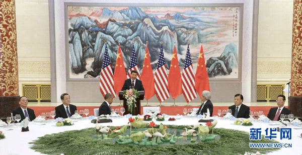 ????11月12日,國家主席習近平在北京人民大會堂舉行宴會,歡迎美國總統奧巴馬來華進行國事訪問。俞正聲、劉云山、王岐山、張高麗出席。 新華社記者 龐興雷 攝