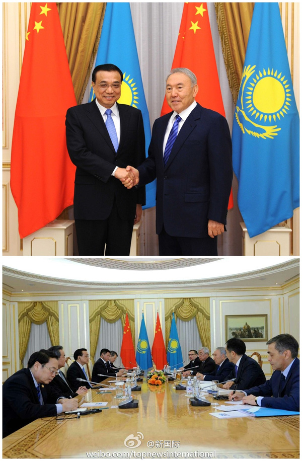 ????新華網(wǎng)北京12月15日電? 據(jù)新華社“新國際”微博報道,哈薩克斯坦總統(tǒng)納扎爾巴耶夫一般不在周末會客??墒菫榱藲g迎遠(yuǎn)道而來的中國總理,他打破了自己的慣例,于當(dāng)?shù)貢r間14日(周日)下午5點,在阿斯塔納總統(tǒng)府三層金廳高規(guī)格接待了首次訪哈的李克強(qiáng)總理,兩人同聲傳譯足足談了一個半小時。
