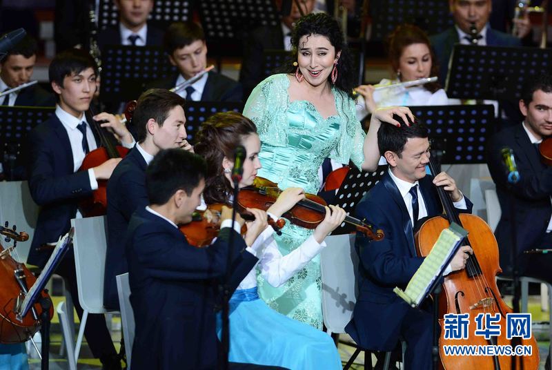 ????3月25日晚,烏茲別克斯坦首都塔什干“烏茲別克斯坦國際論壇宮”,由烏茲別克斯坦文化體育部等多個部門聯合組織舉辦的“春天交響曲”音樂晚會在首都塔什干“烏茲別克斯坦國際論壇宮”精彩上演,烏茲別克斯坦青年藝術家們向來自烏科學、文化、藝術和體育等各界人士代表、駐烏外國使節和國際組織代表以及前來參加烏總統選舉的國際和國內觀察員近2500余名觀眾獻上一場世界著名交響曲和烏茲別克斯坦傳統民族音樂融為一體的精彩音樂盛宴。新華網記者沙達提 攝