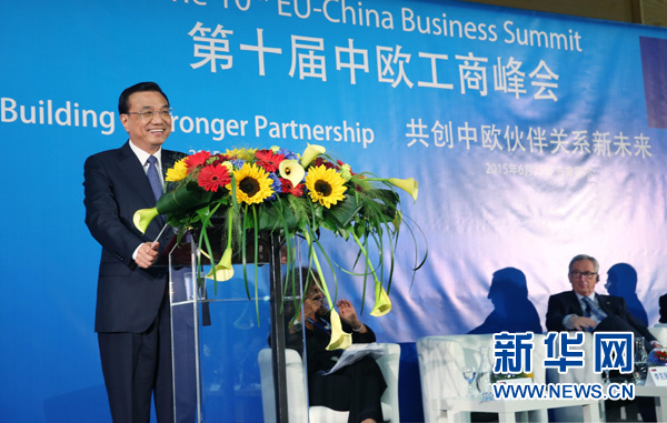 當(dāng)?shù)貢r間6月29日,國務(wù)院總理李克強(qiáng)在布魯塞爾與歐盟委員會主席容克共同出席中歐工商峰會,并發(fā)表主旨演講。新華社記者 姚大偉攝