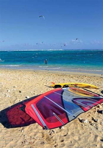 我們在留尼旺的幾天時間里風浪都比較大,不過來到海邊卻發現海灘上依舊人聲鼎沸,原來好動的法國人和一些歐美游客正利用風浪玩起了刺激的海上運動。幾米高的海浪中早已有了十多名沖浪好手相繼嘗試挑戰,雖然他們中的大部分只是業余愛好,并非職業沖浪選手,不過一招一式也是頗為認真??拷0陡浇臏\水區則更多是風帆、摩托艇、皮劃艇、海浪滑板等各項水上運動的世界,對于他們來說,大風就是運動的動力,海水就是運動的場地。一般島上的家庭都會趁著周末舉家開車來到海邊,喜歡玩水的玩水,而其他家庭成員則在沙灘上聚餐或者聊天,如此融入大自然真是瀟灑。