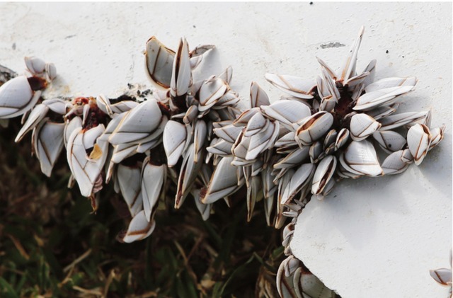 ????藤壺是一種有石灰質外殼的動物,它會分泌一種黏合力極強的膠質,即便風吹浪打也沖刷不掉。任何漂浮在海上的碎片都會被藤壺所附著。