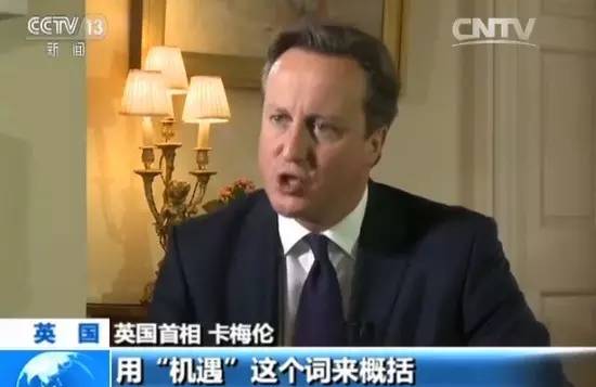 采訪結(jié)束前,央視記者請(qǐng)卡梅倫用一個(gè)詞概括中英關(guān)系。創(chuàng)造“黃金時(shí)代”一詞,令卡梅倫頗感驕傲:“我想,‘黃金’(時(shí)代)這個(gè)詞是我開創(chuàng)的。因?yàn)槲覀兲幵谝粋€(gè)重要時(shí)刻,外交關(guān)系非常好,經(jīng)貿(mào)和投資關(guān)系也非常好,人文交流非常密切。”
