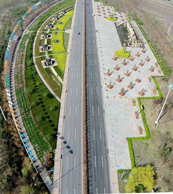 圖為2015年4月14日拍攝的中新天津生態城入口處的綠化景觀。2007年11月,兩國簽署在中國天津建立生態城框架協議。這是中新兩國政府繼蘇州工業園之后合作建設的第二個項目。