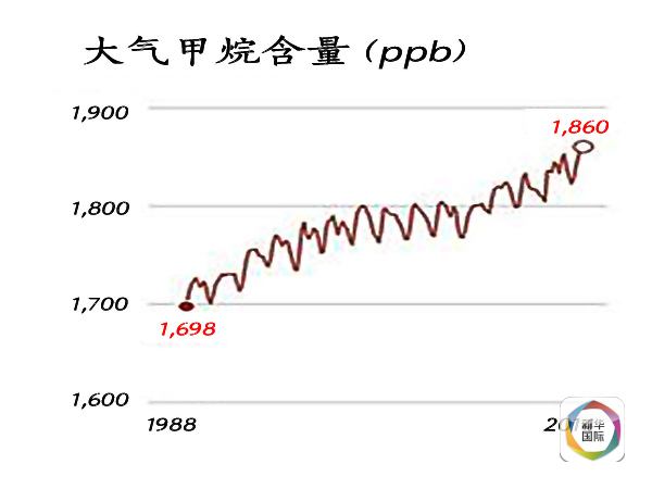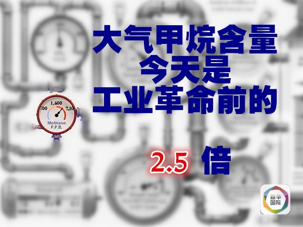 美國國家海洋和大氣管理局統(tǒng)計(jì),2014年大氣中甲烷的含量是工業(yè)革命前的2.5倍強(qiáng)。