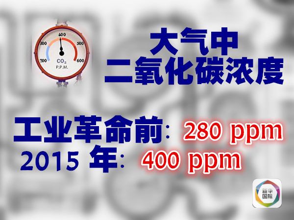 世界氣象組織數(shù)據(jù)顯示,工業(yè)革命前,大氣中二氧化碳含量約為280ppm(ppm是百萬分率,1ppm為百萬分之一);而到2015年,大氣年均二氧化碳濃度已經(jīng)達到400ppm上下。