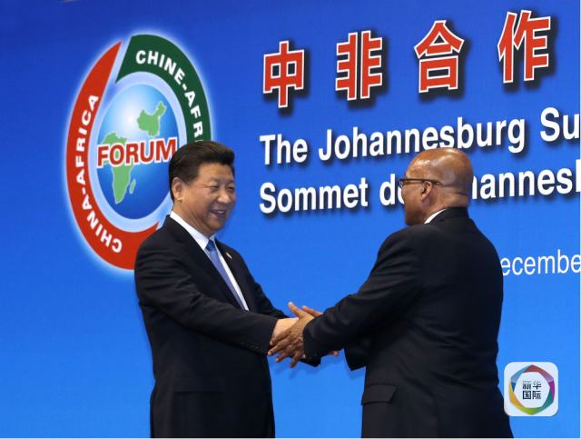 12月4日,國(guó)家主席習(xí)近平出席中非合作論壇約翰內(nèi)斯堡峰會(huì)開(kāi)幕式并發(fā)表致辭。這是南非總統(tǒng)祖馬迎接習(xí)近平。(新華社記者龐興雷攝)