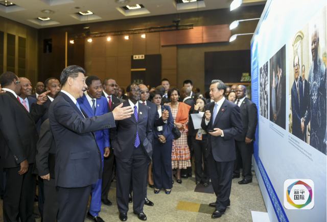 12月4日,國(guó)家主席習(xí)近平在約翰內(nèi)斯堡出席中非合作論壇15周年成果圖片展開(kāi)幕式,同南非總統(tǒng)祖馬,非盟輪值主席、津巴布韋總統(tǒng)穆加貝一道為展覽剪彩。這是習(xí)近平同非洲國(guó)家和地區(qū)組織領(lǐng)導(dǎo)人觀看展覽。(新華社記者謝環(huán)馳攝)