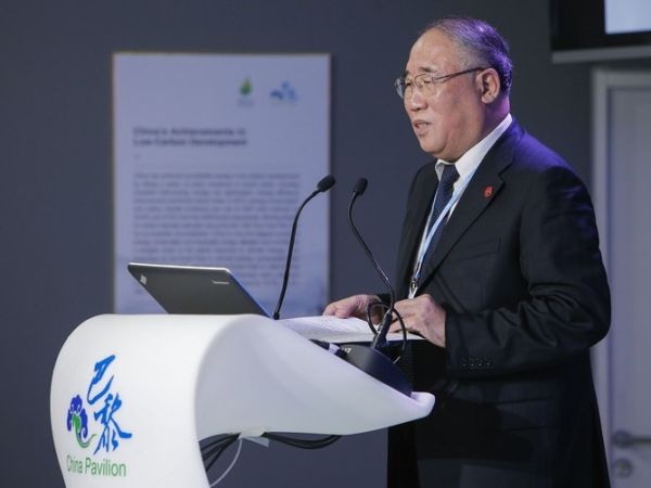 12月1日,中國氣候變化事務特別代表解振華在中國與亞洲開發銀行氣候變化合作高級別邊會中致辭。新華社記者周磊攝