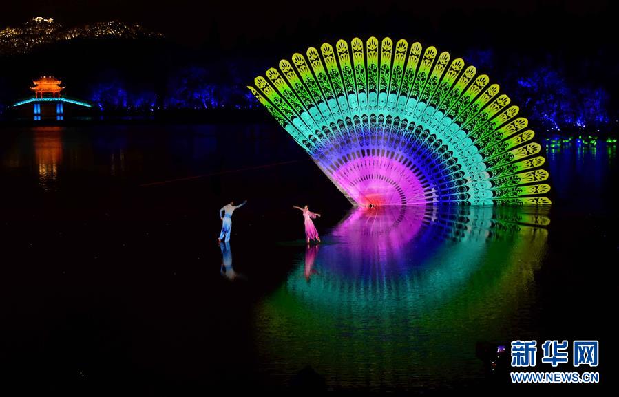??? 9月4日,演員在表演《美麗的愛情傳說》。當(dāng)日,出席二十國集團(tuán)領(lǐng)導(dǎo)人杭州峰會的G20成員和嘉賓國領(lǐng)導(dǎo)人及有關(guān)國際組織負(fù)責(zé)人在杭州西湖景區(qū)觀看《最憶是杭州》實景演出交響音樂會。新華社記者 張鐸 攝