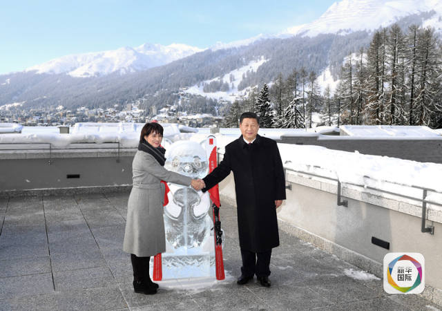 1月17日,國家主席習近平同瑞士聯(lián)邦主席洛伊特哈德在達沃斯共同啟動中瑞旅游年。兩國元首在熊貓冰雕像和印有中瑞兩國國旗及“中瑞旅游年”字樣的滑雪板旁合影留念。新華社記者饒愛民攝