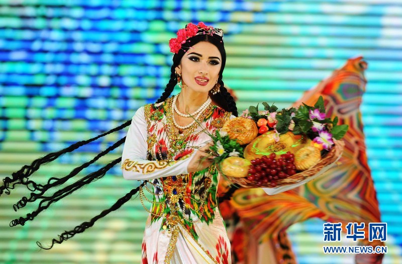 1月18日晚,烏茲別克斯坦首都塔什干人民友誼宮,烏茲別克斯坦舞蹈演員在表演中烏傳統舞蹈。