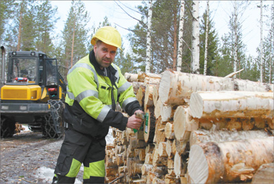 這里是芬蘭芬歐匯川公司的一處伐木場。陪同參觀的該公司森林業(yè)務部門經(jīng)理米科·韋利坎加斯介紹說,這里的杉木過于茂密,需要間伐以便林木更快生長。