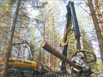 從芬蘭首都赫爾辛基驅(qū)車往北一個多小時,我們的四輪驅(qū)動汽車駛上一條小路。路上積雪越來越多,兩旁的森林也越來越密。循著轟鳴聲,我們看到一臺伐木機正在作業(yè):一只碩大的機械手攥住云杉的底部,量直徑、切樹樁、去雜枝、測長度、斷木頭,幾秒鐘的工夫,一氣呵成。