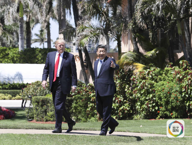 當地時間4月7日,國家主席習近平在美國佛羅里達州海湖莊園同美國總統特朗普舉行中美元首第二場正式會晤。會晤后,習近平同特朗普到秀麗宜人的海湖莊園中散步,在輕松友好的氣氛中繼續就兩國友好合作進行討論。(新華社記者饒愛民攝)