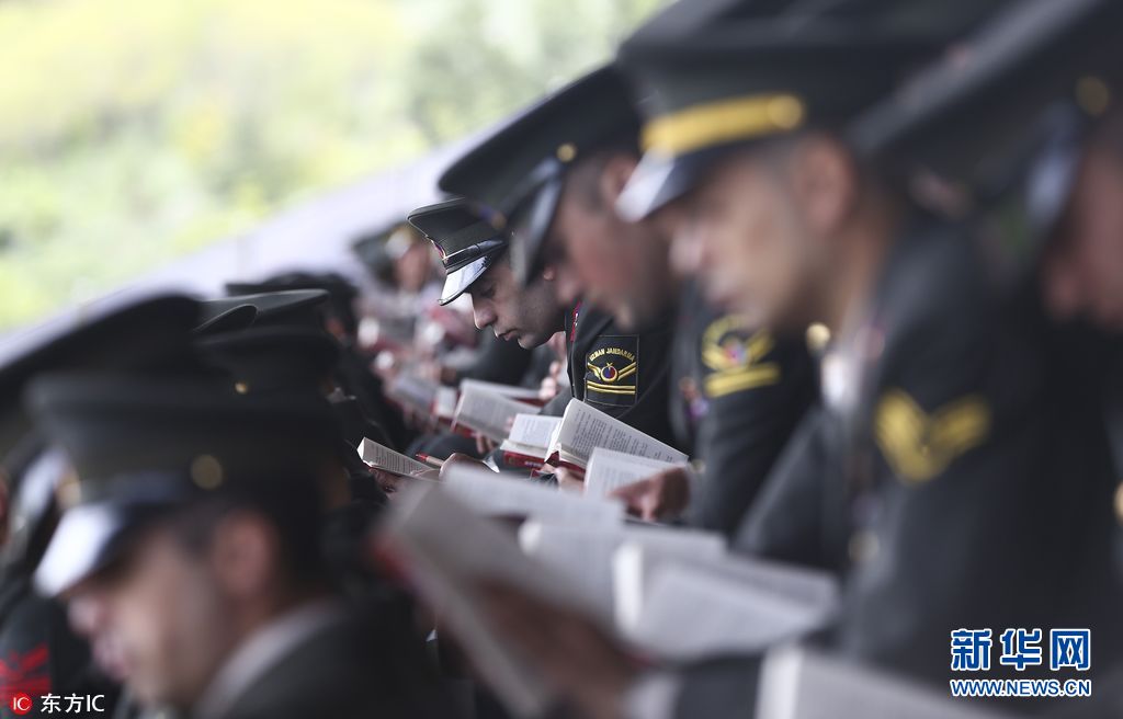 當(dāng)?shù)貢r(shí)間2017年5月18日,土耳其安卡拉,在憲兵和海岸警衛(wèi)學(xué)院體育場(chǎng),土耳其憲兵參加集體讀書活動(dòng),打破“最多人一起讀書”吉尼斯紀(jì)錄,慶祝憲兵部成立178周年。包括土耳其憲兵、海岸警衛(wèi)隊(duì)及其家人在內(nèi)等5754人參加了這一集體活動(dòng)。(圖片來(lái)源:東方IC)