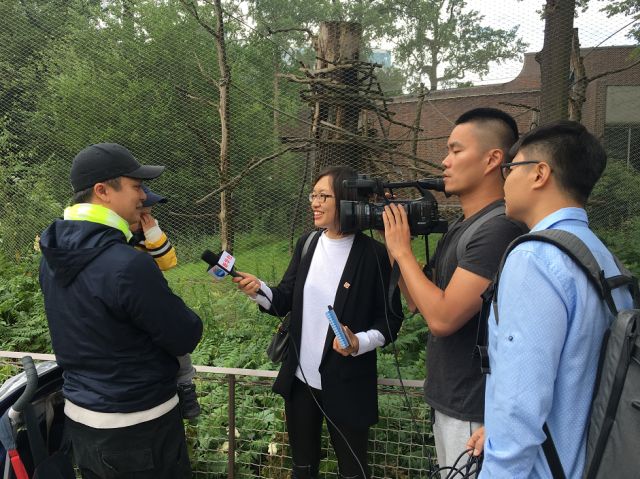 因為大熊貓?zhí)幵跈z疫期,動物園方面無法安排它們同來自家鄉(xiāng)的記者近距離接觸。看到記者面露失望,尹洪笑著安慰我們:“大家請放心,兩個小貓(昵稱)在這邊一切都好。”