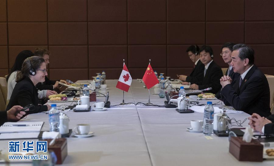 11月11日,外交部長王毅在越南峴港應(yīng)約會(huì)見加拿大外長弗里蘭。新華社記者 費(fèi)茂華 攝
