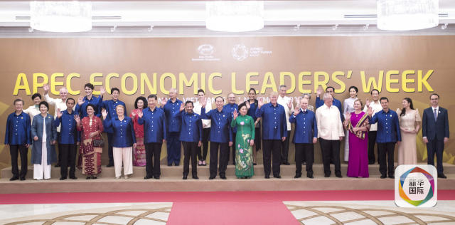 11月11日,亞太經合組織第二十五次領導人非正式會議在越南峴港舉行。國家主席習近平出席并發表題為《攜手譜寫亞太合作共贏新篇章》的重要講話。這是會議期間,國家主席習近平同其他亞太經合組織成員經濟體領導人、代表合影。新華社記者李濤攝
