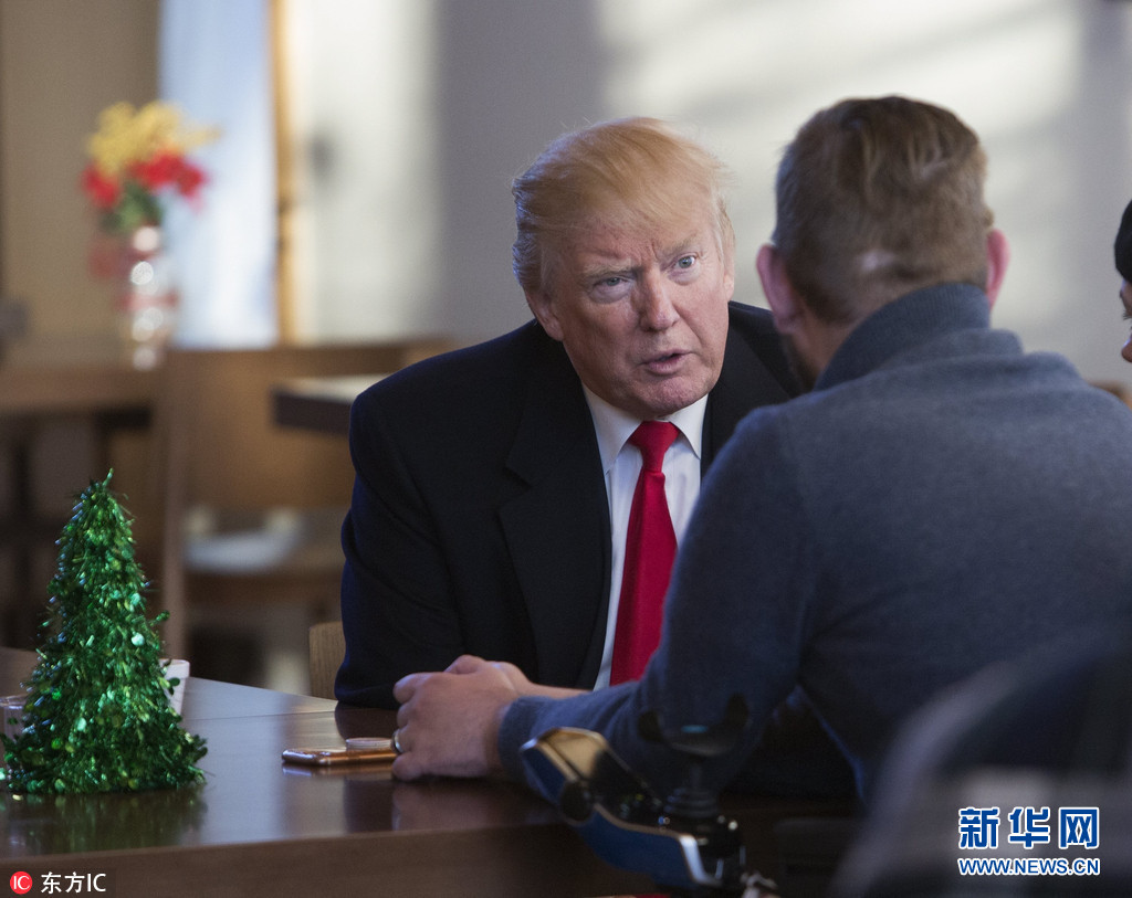 當(dāng)?shù)貢r(shí)間21日,美國(guó)馬里蘭州,美國(guó)總統(tǒng)特朗普訪問沃爾特-里德國(guó)家軍事醫(yī)療中心,慰問受傷士兵和家屬,并與退伍的海軍陸戰(zhàn)隊(duì)中士John Peck交談。
