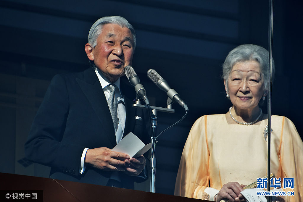當(dāng)?shù)貢r間2017年12月23日,日本東京,日本明仁天皇慶祝84歲生日,在皇宮的陽臺上向祝福者揮手致意。(圖片來源:視覺中國)