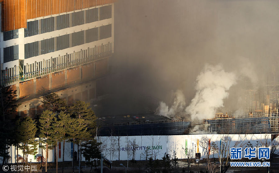 12月25日,韓國水原市,當地一處公寓施工現場發生火災,現場濃煙滾滾。(圖片來源:視覺中國)