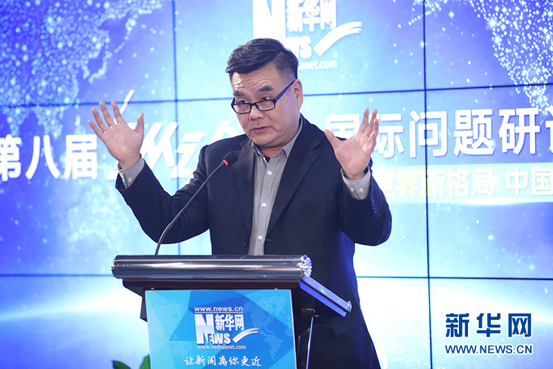 12月26日,新華網第八屆“縱論天下”國際問題研討會成功舉行。圖為中國國際問題研究院歐洲研究所所長崔洪建在主旨演講。新華網發(郭小天攝)。