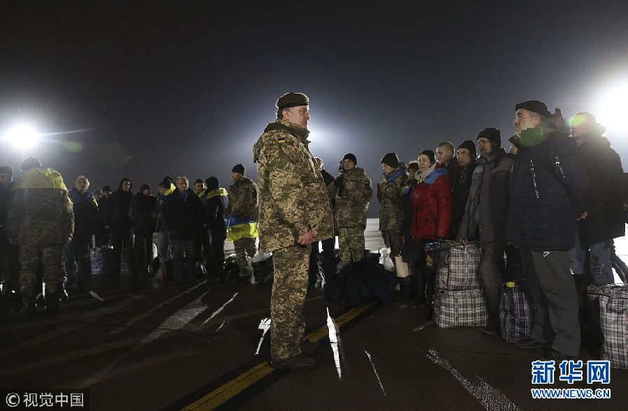 12月27日,烏克蘭哈爾科夫,獲釋戰(zhàn)俘抵達哈爾科夫。烏克蘭政府軍與東部民間武裝當日舉行了大規(guī)模的交換戰(zhàn)俘行動。(圖片來源:視覺中國)