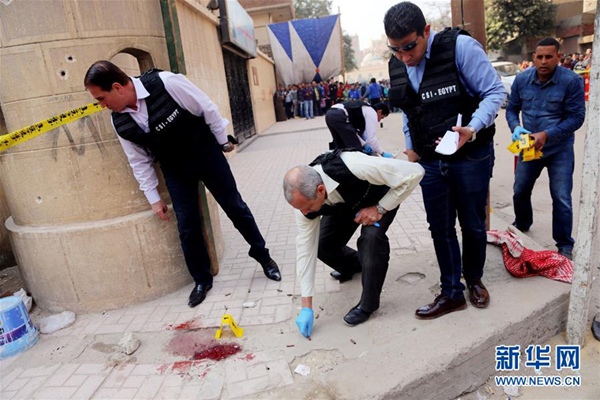 12月29日,警察在埃及開(kāi)羅教堂襲擊事件現(xiàn)場(chǎng)調(diào)查。新華社發(fā)(艾哈邁德·戈馬攝)