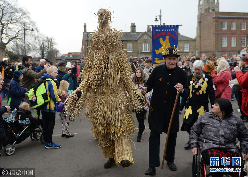 英國小鎮慶祝“稻草熊”節 民眾跟隨草人盡情舞動