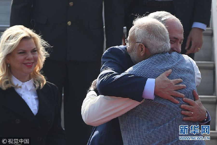 當地時間1月14日,印度新德里,以色列總理內塔尼亞胡抵達印度展開訪問。(圖片來源:視覺中國)