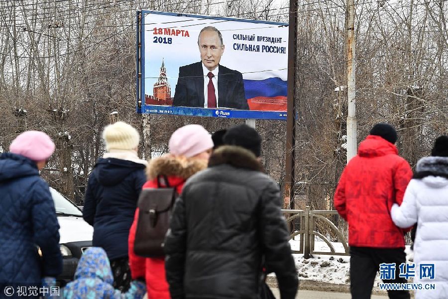 當地時間2018年1月15日,俄羅斯葉卡捷琳堡,2018俄羅斯總統大選拉開帷幕,巨大普京海報矗立街頭。(圖片來源:視覺中國)