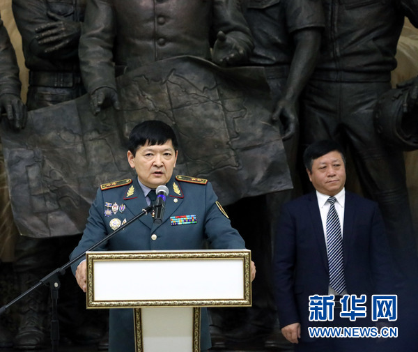 哈薩克斯坦國(guó)防部副部長(zhǎng)穆赫塔羅夫在圖片展開(kāi)幕式上致辭。新華網(wǎng)發(fā)