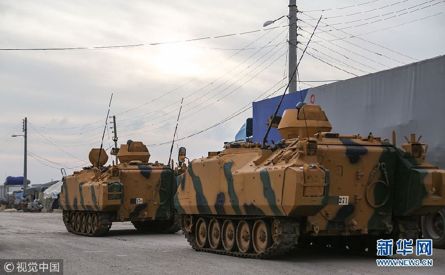 當地時間1月21日,土耳其哈塔伊省,土耳其部隊在土敘邊境哈薩鎮附近。(圖片來源:視覺中國)