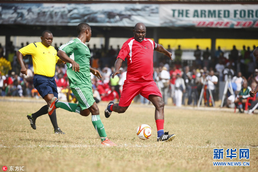 1月20日,利比里亞首都蒙羅維亞,利比里亞當選總統、前世界足球先生喬治-維阿參加慈善足球比賽,率領維阿全明星隊對戰利比里亞武裝部隊士兵隊。喬治-維阿在去年12月27日當選利比里亞新一任總統,并將于2018年1月22日就職。(圖片來源:東方IC)