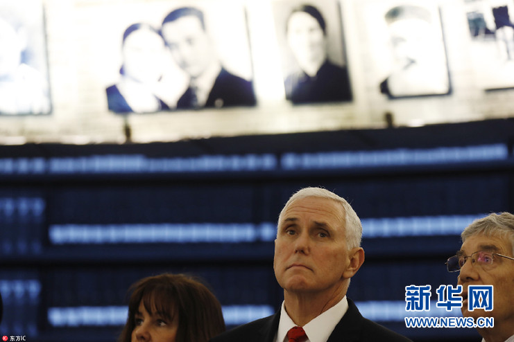 當?shù)貢r間2018年1月23日,耶路撒冷,美國副總統(tǒng)彭斯訪問以色列,前往“哭墻”禱告并參觀大屠殺紀念館。(圖片來源:東方IC)