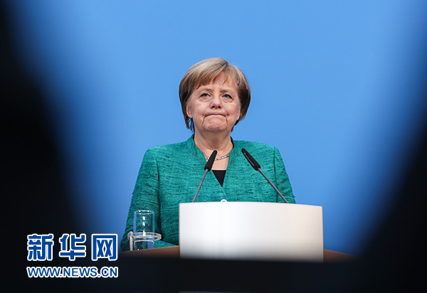 2月7日,在德國(guó)首都柏林的基民盟總部,德國(guó)總理、聯(lián)盟黨領(lǐng)導(dǎo)人默克爾出席新聞發(fā)布會(huì)。新華社記者 單宇琦 攝
