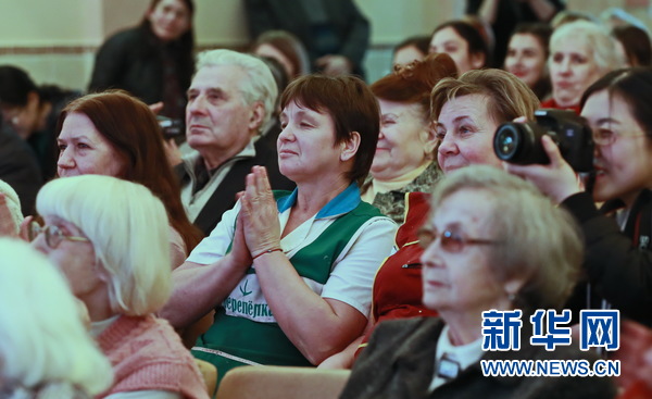基輔市敬老院的孤殘老人們興致勃勃地觀看孔院師生帶來(lái)的文藝節(jié)目。新華網(wǎng)發(fā)(陳俊鋒攝)