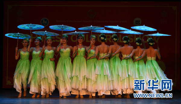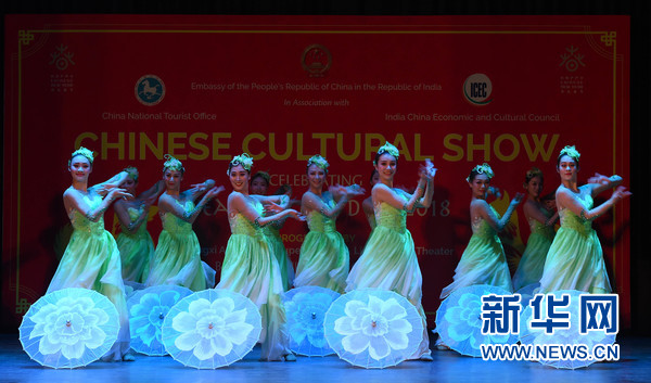 2月9日,在印度首都新德里,2018“歡樂春節(jié)”活動(dòng)演出現(xiàn)場,中國演員在表演舞蹈。新華網(wǎng)發(fā)(張迺杰攝)