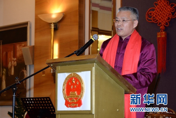 2月12日,中國駐克羅地亞大使胡兆明在薩格勒布出席中國春節慶祝晚會時致辭。新華網發(高磊攝)
