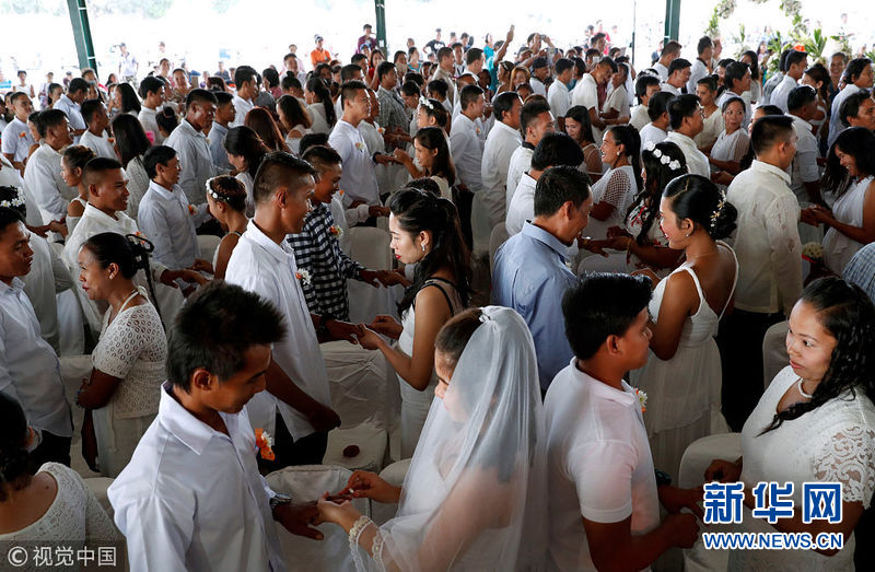 2月13日,菲律賓蘇比克,情人節前夕,當地舉辦集體婚禮。(圖片來源:視覺中國)